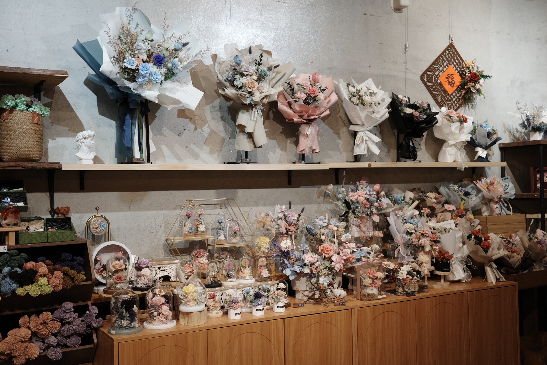 選擇自己喜歡的花材、包裝、緞帶顏色,讓這些選擇長成獨一無二的作品後,我們也提供各種風格及類型的器皿、小擺飾,讓偶爾覺得生活就像 Ctrl + C & Ctrl + V 的自己,用微小而優雅的點綴方式,讓花、讓擺飾走進你的生活細節裡。